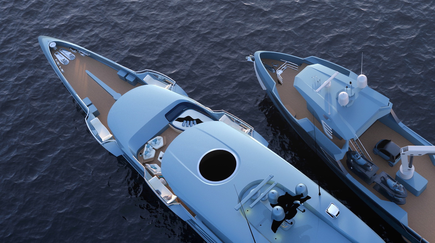 Please contact CharterWorld - the luxury yacht charter specialist - for more on superyacht news item "Preview rendering - PHI and shadow vessel by Cor D Rover".