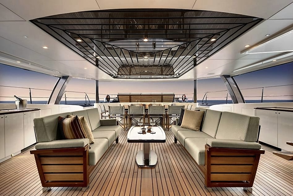 Luxury yacht KOKOMO – Alfresco dining on the aft deck.