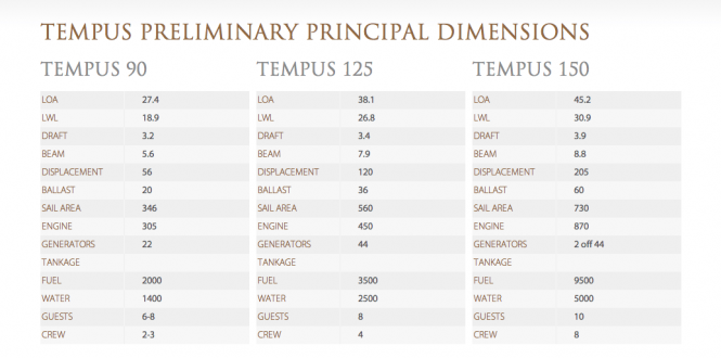 TEMPUS CLASS yacht is a beautiful looking vessel with modern accommodation and better hull volume than the traditional J Class. The range includes the already mentioned sailing yacht Tempus 90, the Tempus 125 and the Tempus 150 yacht – with a choice of sloop, cutter or ketch rigs.