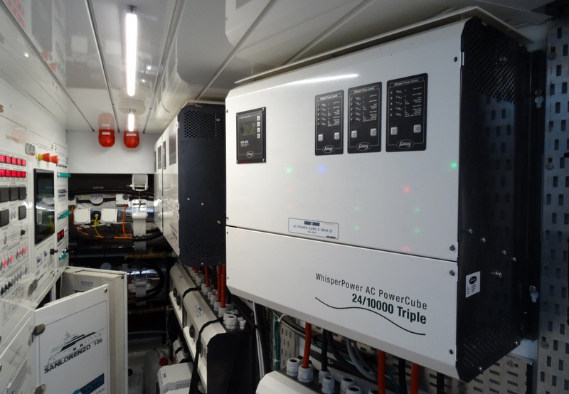 Please contact CharterWorld - the luxury yacht charter specialist - for more on superyacht news item "1-Sanlorenzo 106 Hybrid Yacht Engine Room - AC PowerCube by WhisperPower".