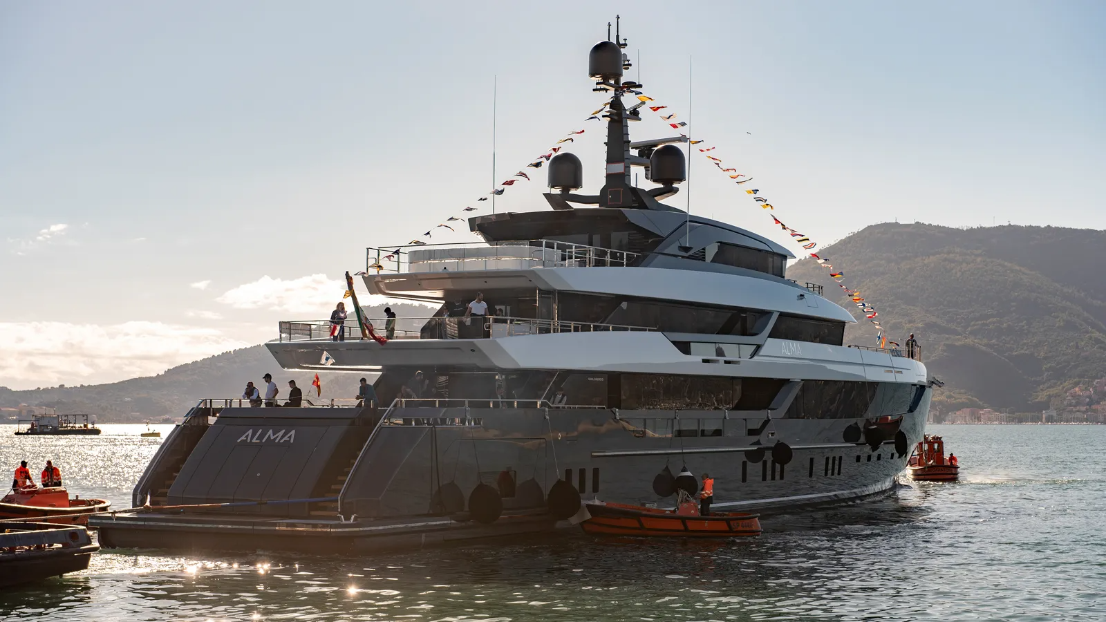 This image is featured as part of the article Sanlorenzo christens 57Steel yacht ALMA.