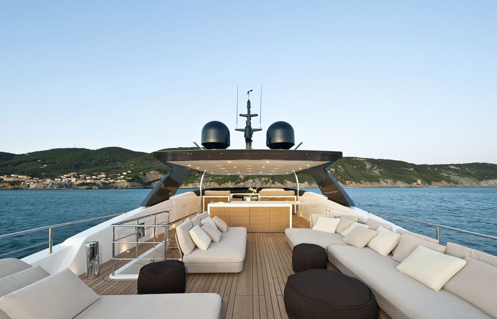Please contact CharterWorld - the luxury yacht charter specialist - for more on superyacht news item "2010 Sanlorenzo SL100 New flying bridge motor yacht Flybridge view".