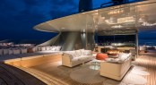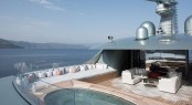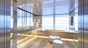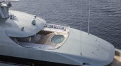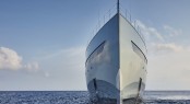 Paris-based Cristina Gherardi Design was given the task of making a concept that connects with nature, and together with architect Marcello Bozzarelli they have succeeded in creating the owner’s desire of a ‘visually floating’ superstructure where each deck appears to hover above her metallic pale green hull. To add to this effect, SAVANNAH’s matt black windows curve seamlessly from bow to aft and add tonal contrast against her paintwork.