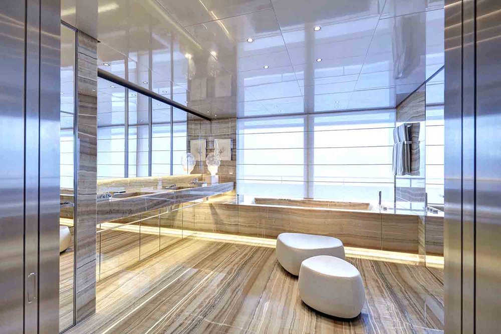 Please contact CharterWorld - the luxury yacht charter specialist - for more on superyacht news item "Savannah by Feadship - owners bathrooms - Photo Jeff Brown".