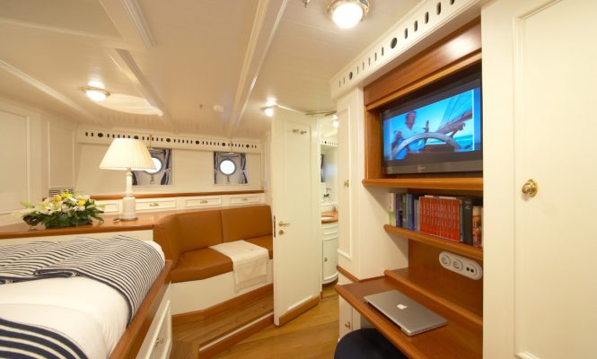 Both sailing yachts and motor yachts have offices, however, you are more likely to find the fastest facilities with the best connections on the most recently launched or refitted vessels: S/Y GERMANIA NOVA is a replica of the 1908 schooner GERMANIA right down to her traditional interiors, however, she also comes equipped with a fully-functioning office providing Internet, email, phone and fax services anywhere in the world using satellite technology.