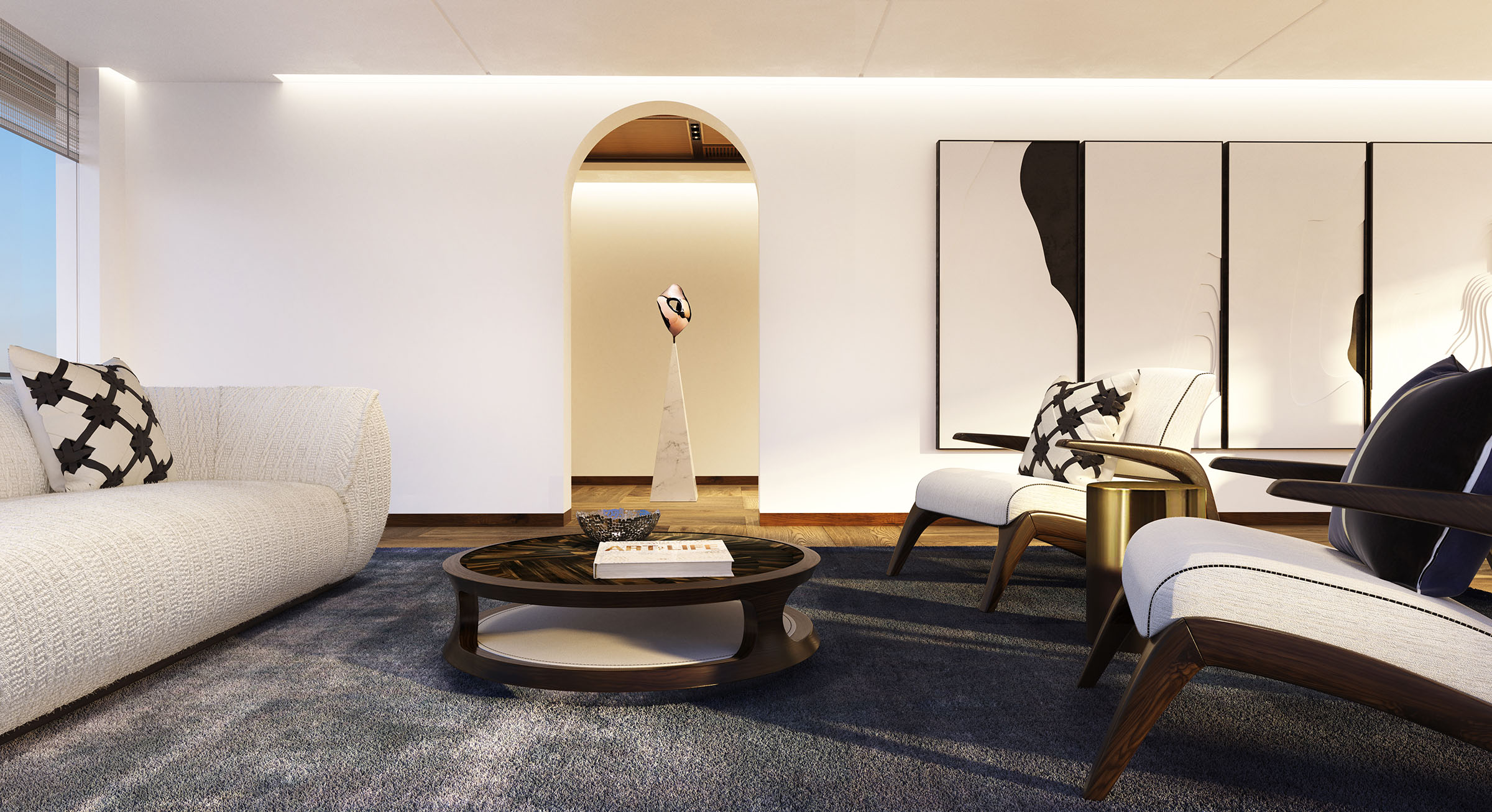 Owner suite lounge upper deck – Photo Sinot Yacht Architecture & Design