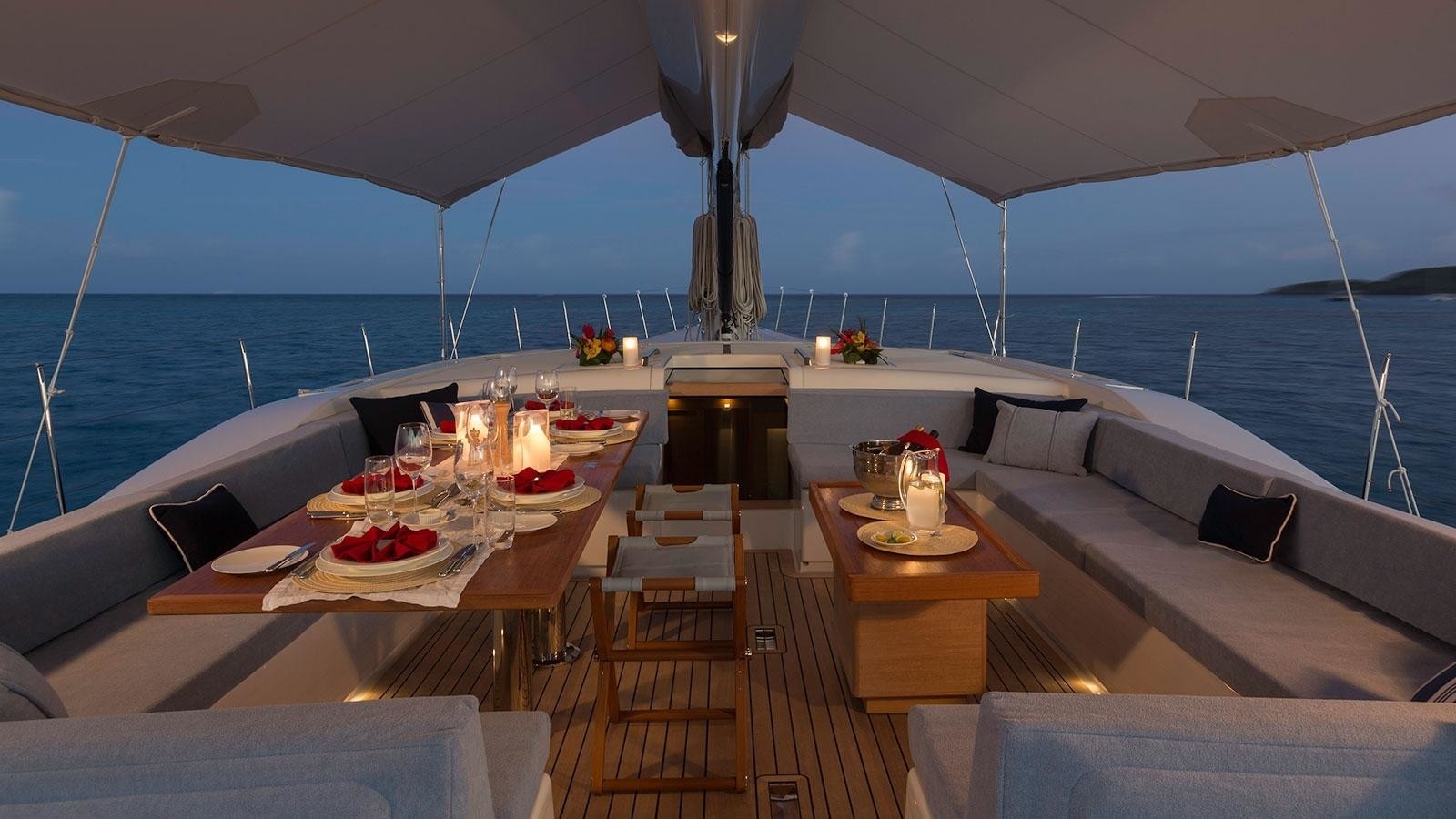 Alfresco dining aboard the luxurious sailing yacht FARFALLA