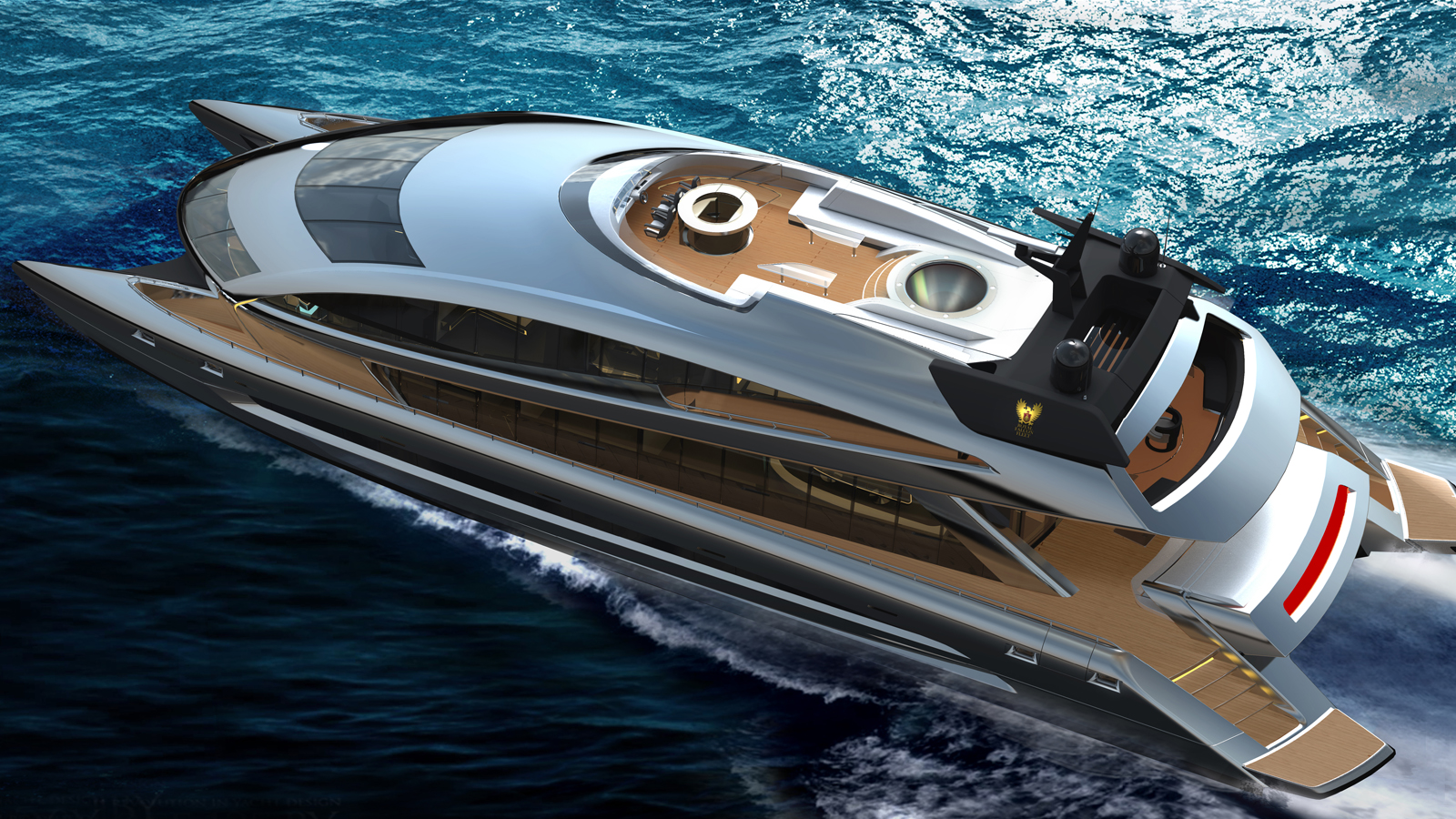 This image is featured as part of the article Spaceship for the ocean: 41.4m Porsche Design yacht Royal Falcon One hits the water in Sweden.