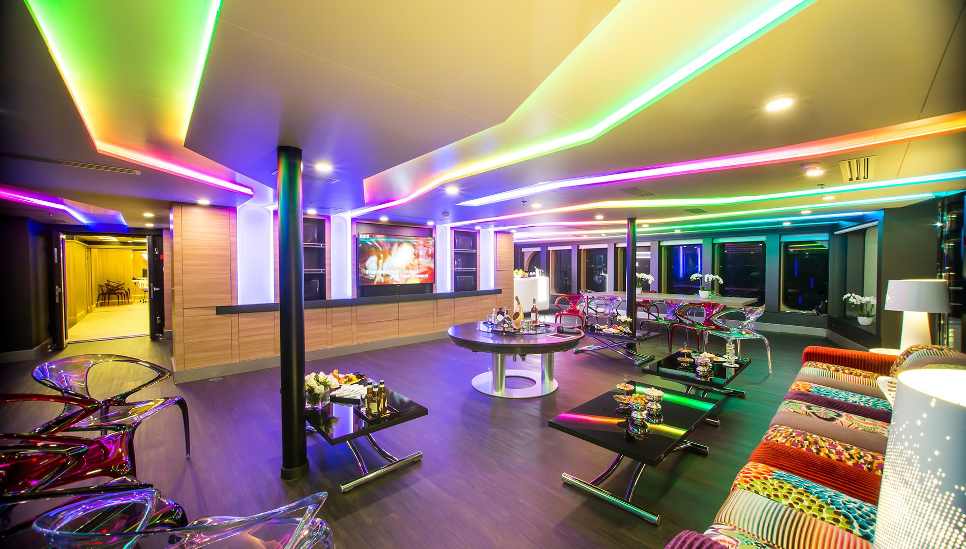 Please contact CharterWorld - the luxury yacht charter specialist - for more on superyacht news item "Night time in the main salon aboard motor yacht SALUZI".