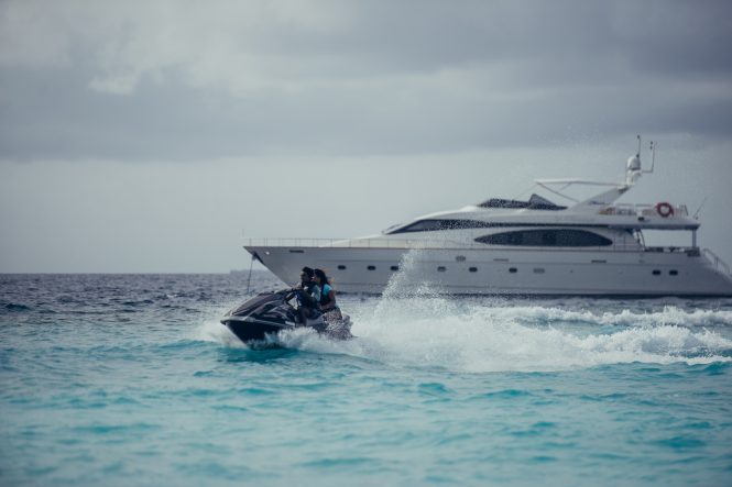 Luxury yacht NAWAIMAA comes with an excellent selection of water toys, with a jet ski, water skis, Scuba diving equipment, snorkelling equipment and inflatable toys.