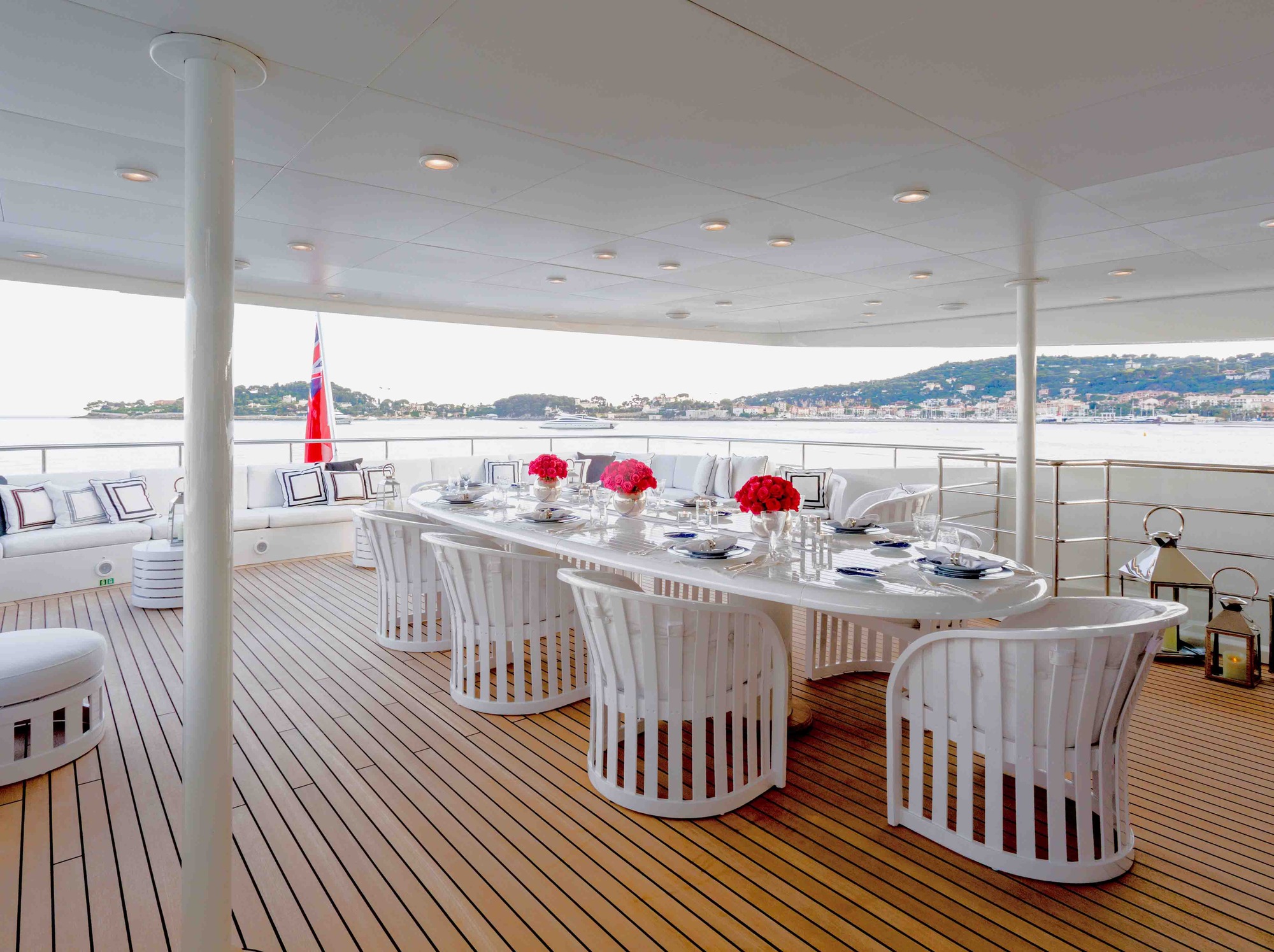 Alfresco dining on the upper deck of luxury yacht MISCHIEF