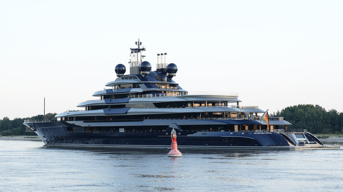Latest photos of Imposing 156m Superyacht OMAR by Lurssen preparing for launch