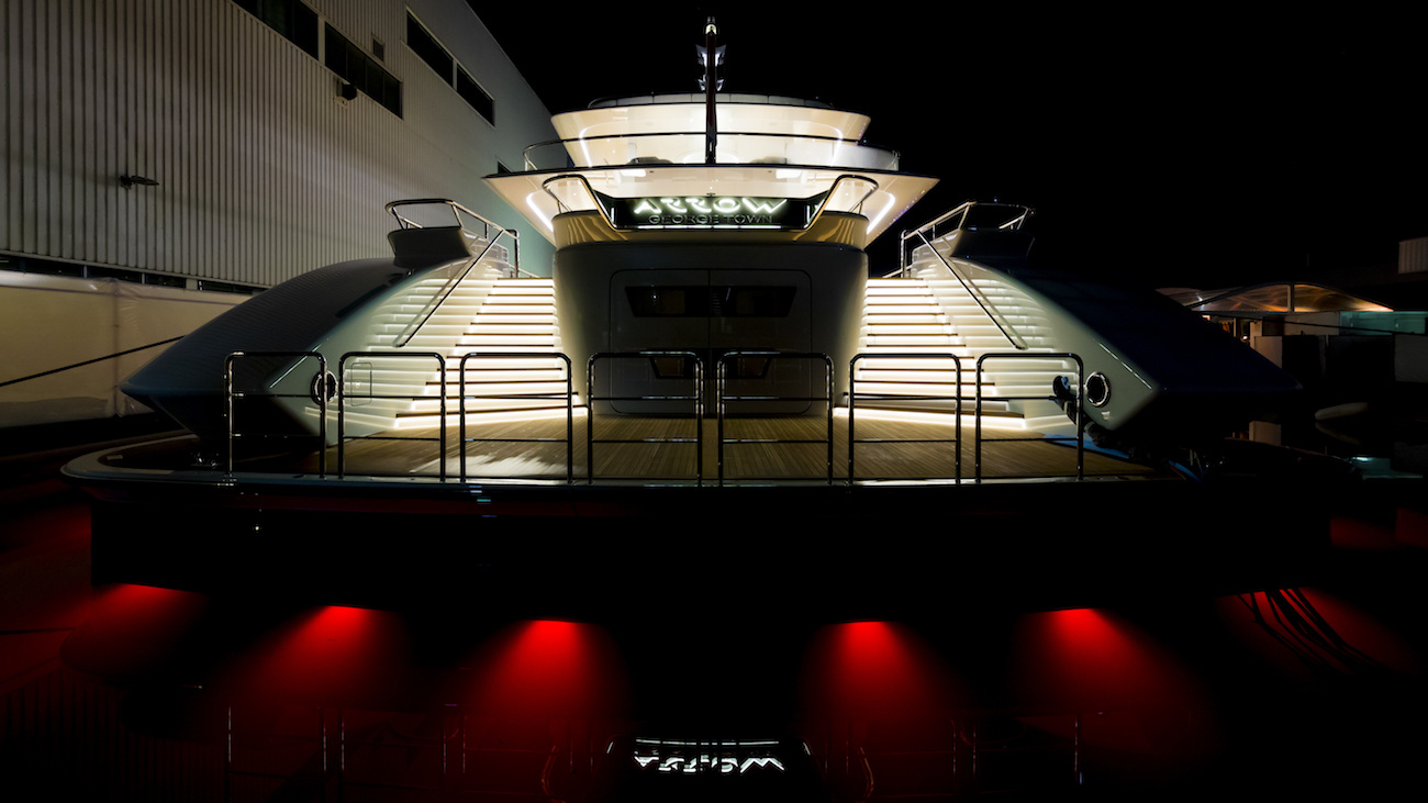 Please contact CharterWorld - the luxury yacht charter specialist - for more on superyacht news item "ARROW aft by night - Photo © Feadship".