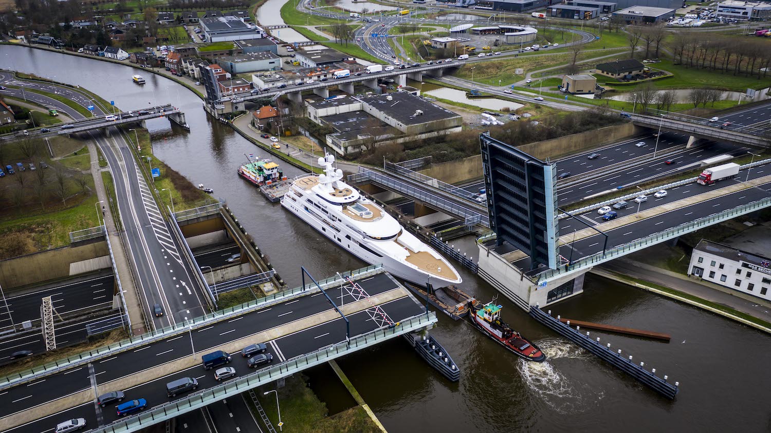 This image is featured as part of the article Staggering photos of Feadship Project 707 motor yacht BROADWALK leaving for sea trials.