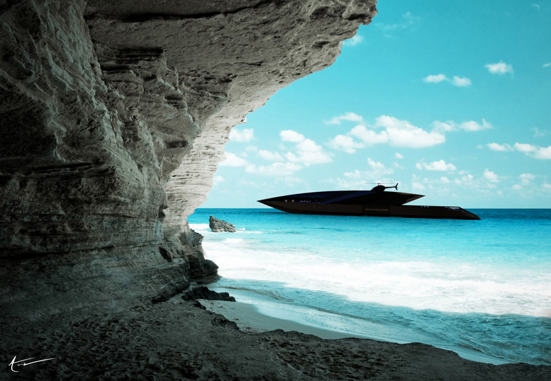 This image is featured as part of the article Striking 70m mega yacht BLACK SWAN concept by Timur Bozca.