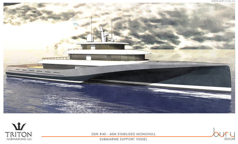 The latest 60m Bury expedition yacht concept represents an all-aluminium submarine support vessel, providing excellent sea keeping as well as comfort at all speeds. It features 4 spacious cabins for her guests and 6 crew cabins for a crew of 12. ... read full story
