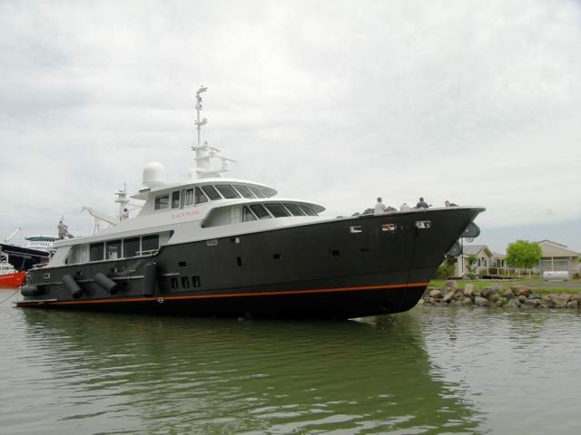 Photos of the newly refitted 31,50m super yacht Black Pearl, while being rolled out for launching at Oceania Marine in New Zealand. ... read full story