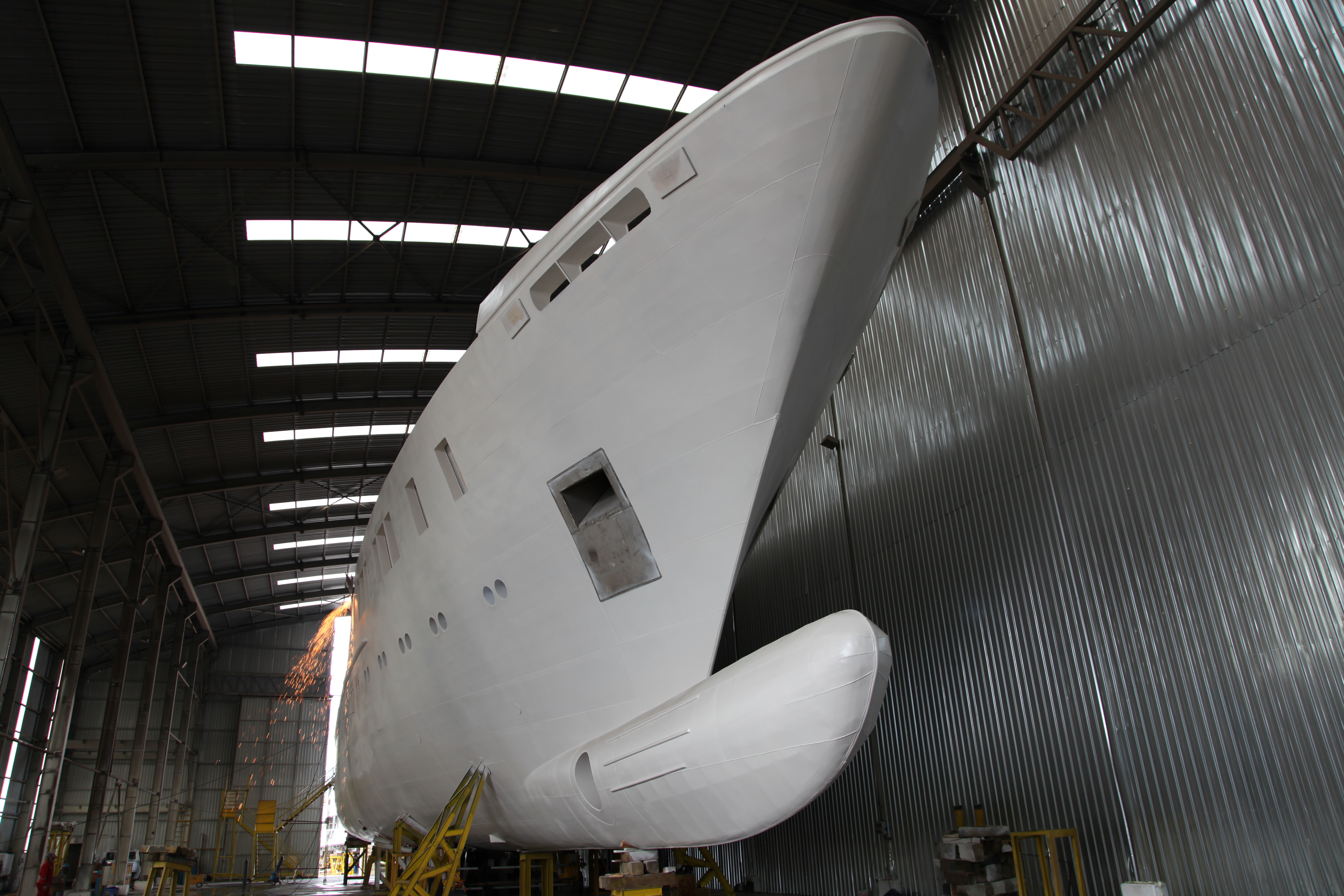 This image is featured as part of the article Sunrise Yachts first 63m motor yacht Project 601 under construction.