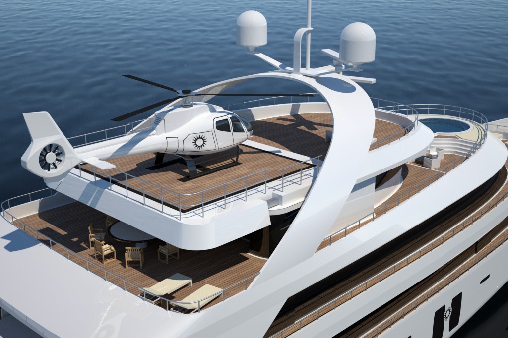 The highest of the closed decks is the Command deck from which the captain can control all the vital ship functions. Besides from the wheel house on the Command deck are situated the captain’s cabin, radio room and sickbay. The helipad on the sun deck will surely facilitate and speed up communications and travel between the main land and the yacht Shining.