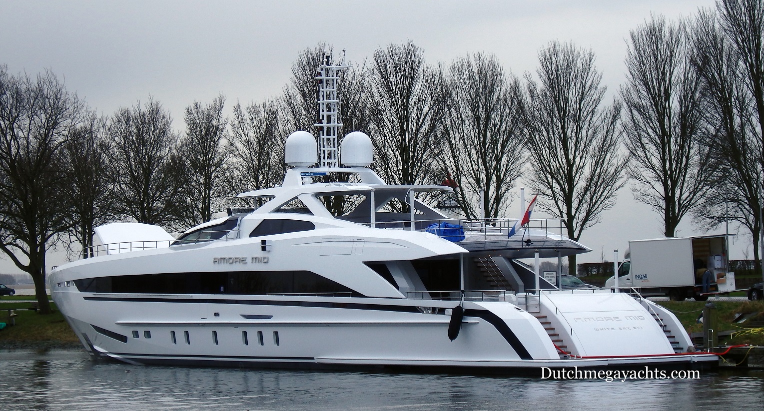 Please contact CharterWorld - the luxury yacht charter specialist - for more on superyacht news item "Amore Mio in Hellevoetsluis - aft view - Photo by Dutchmegayachts".