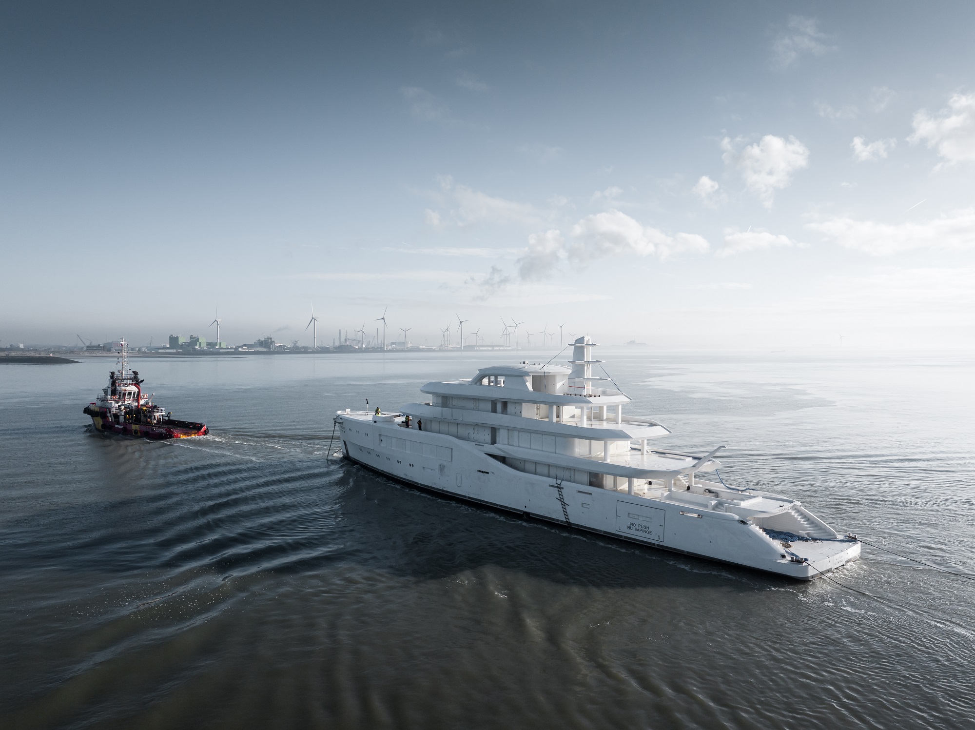 Superyacht AMELS 8003 arrives in the Netherlands for outfitting