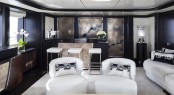 Interior design features precise and boldly delineated geometric shapes and strong colours attributed to Art Deco theme. Raymond Langton incorporated a plethora of luxurious materials to create a truly rich atmosphere onboard, such Macassar ebony, white onyx, leather and stainless steel, to mention but a few. A breathtaking decor element of Ann G’s interior is the chandelier, which extends over two decks. Once you step on board this superyacht, it is very hard not to fall in love with her!