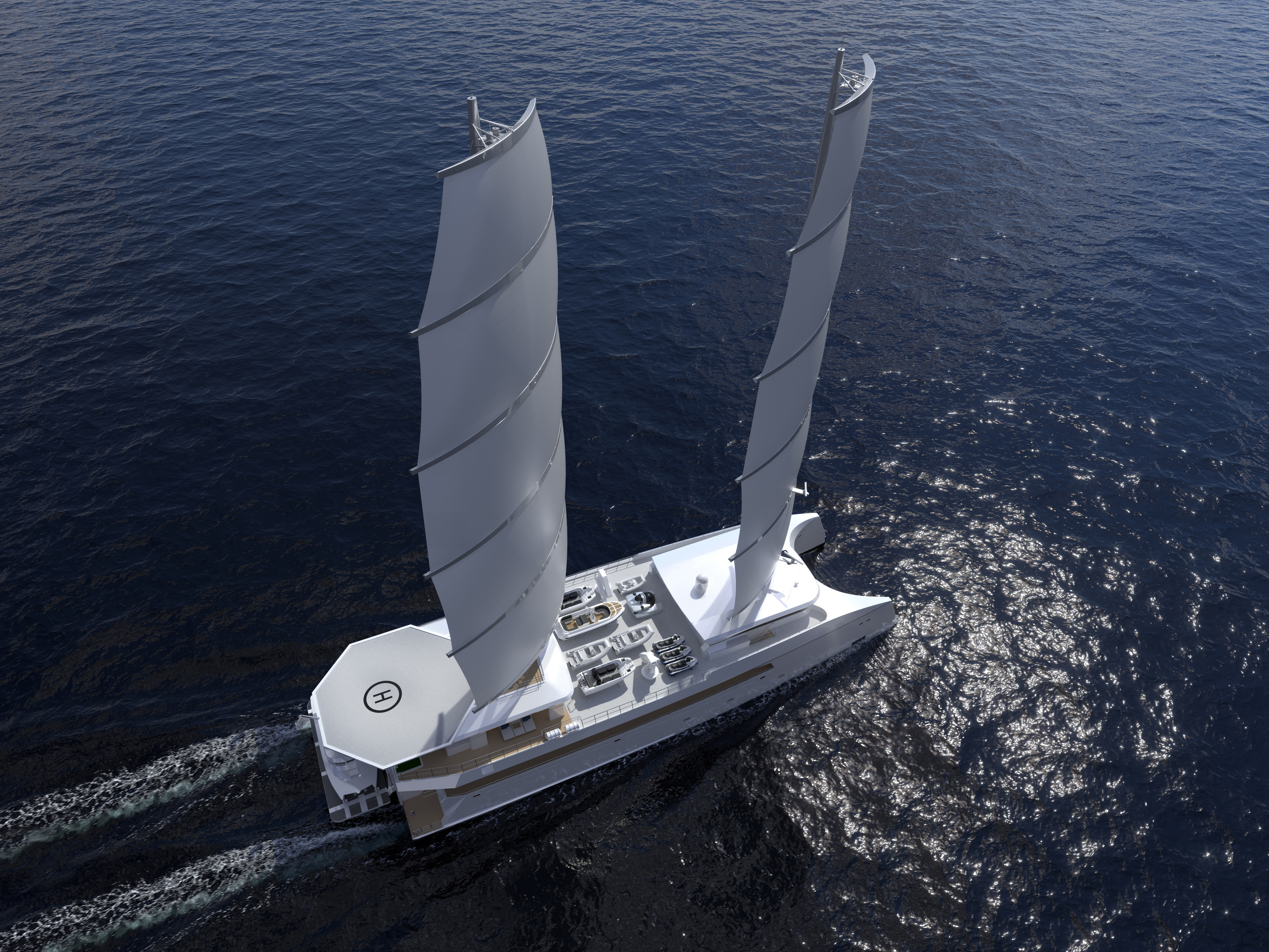 This image is featured as part of the article Superyacht ASC57 – the world’s largest sailing catamaran – begins construction at Echo Yachts.