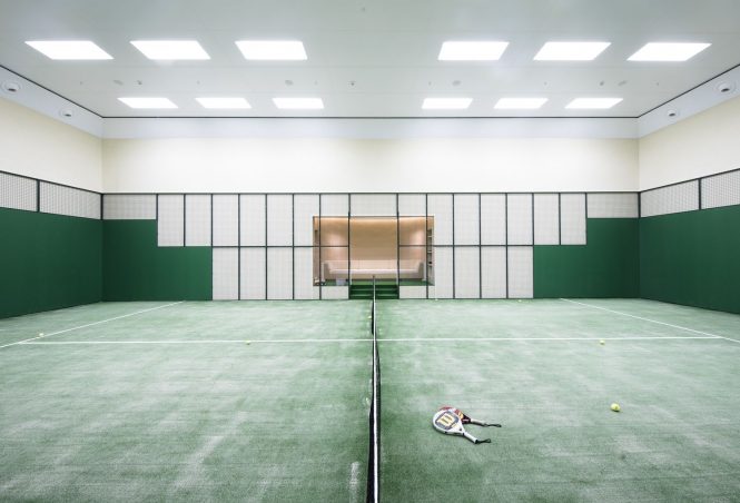“It is not only a lifestyle change for the owner but also for the crew as this is also the largest gym of any yacht,” said the designers at Raymond Langton Design. “The crew is encouraged to play with the owner and guests and when the court is not in use for padel, the net can be removed and the crew plays football and use other exercise equipment in the space. It is after all a sports hall.