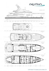 The striking contemporary design of yacht BIG FISH is from Gregory C. Marshall Naval Architects. She is a 45m large volume steel and aluminum motor yacht that exemplifies the highest standards of design, construction, fuel-efficiency, safety and comfort.