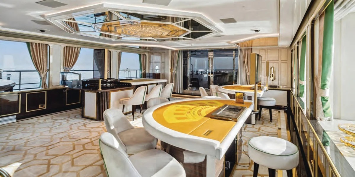 This image is featured as part of the article Superyacht BOMBAY brings the high-life to the high-seas with her exclusive on-board casino.