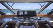 Ocean Alexander 100′ features a vinyl-ester resin platform with high-density structural platform, which are normally used in superyachts of larger sizes. In-house designed have developed the exterior of OA 100, while Evan K. Marshall worked on the interior design with an emphasis on opulence and comfort. Thus, glossy wooden panelling, ceiling panels with diamond faceted edging and marble floors provide a sophisticated and tailored look.