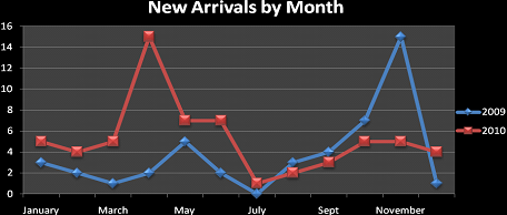 Whilst in 2010, we saw a reverse in trend reaching its peak in the first half of the year, and a dip in November.