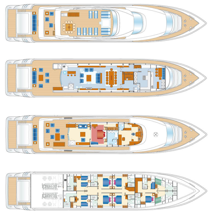 The Nadare 43’s genral arrangement suggests Yacht TALAL’s could have accommodation for up to 12 guests.