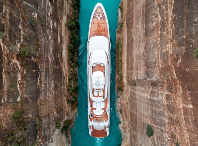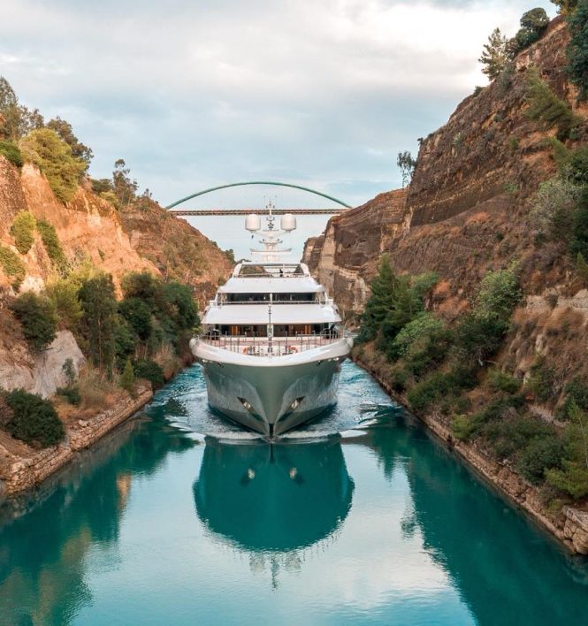 Video of O’Ptasia passing the Corinth Canal by Beyond Vision Aerial Filmmaking