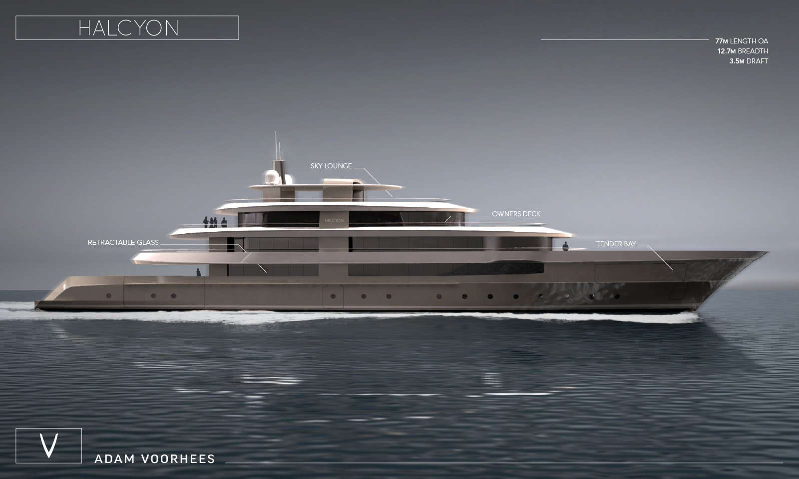 Latest 77m mega yacht HALCYON concept by Adam Voorhees Design