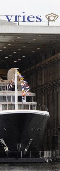 On Saturday, March 26 at the yard of Koninklijke De Vries Feadship in Aalsmeer Ship motor yacht ‘AIR’ had her launching cerimony. Despite the bad weather the event attracted many visitors. With her 81 meters the AIR yacht is the longest ever built in Aalsmeer. FESTIVAL: Before the famous bottle of champagne hit against the... ... read full story