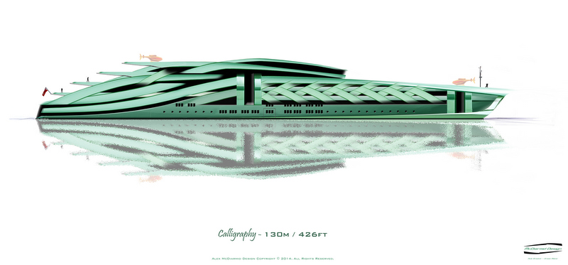 Latest 130m mega yacht CALLIGRAPHY concept by Alex McDiarmid