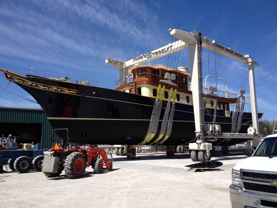 Newly refitted 122′ classic motor yacht ATLANTIDE leaves Front Street Shipyard