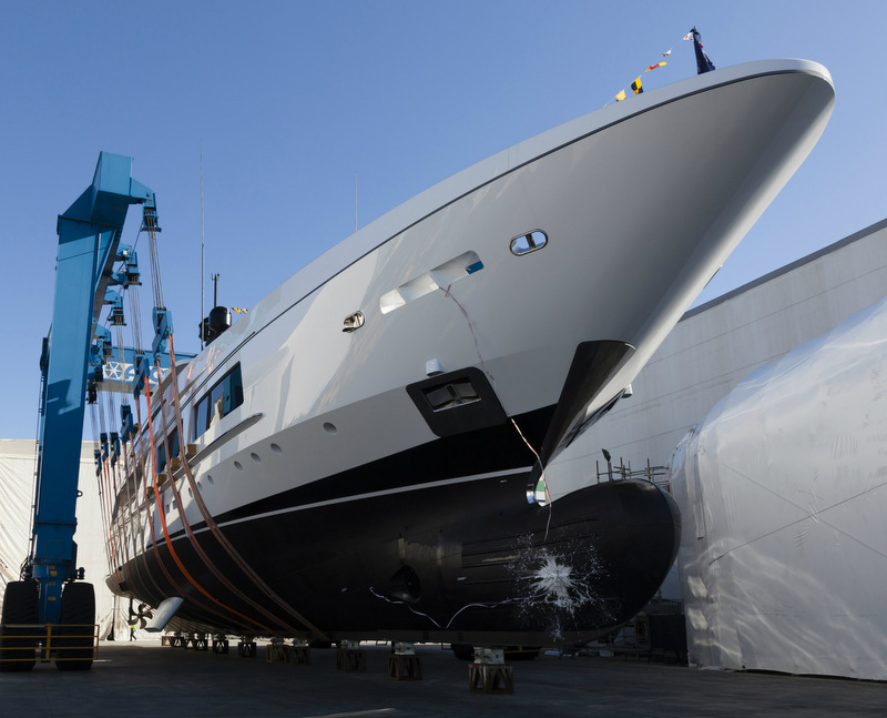 Eagerly awaited launch of NEW 54m Displacement Yacht hull #10219 by Baglietto
