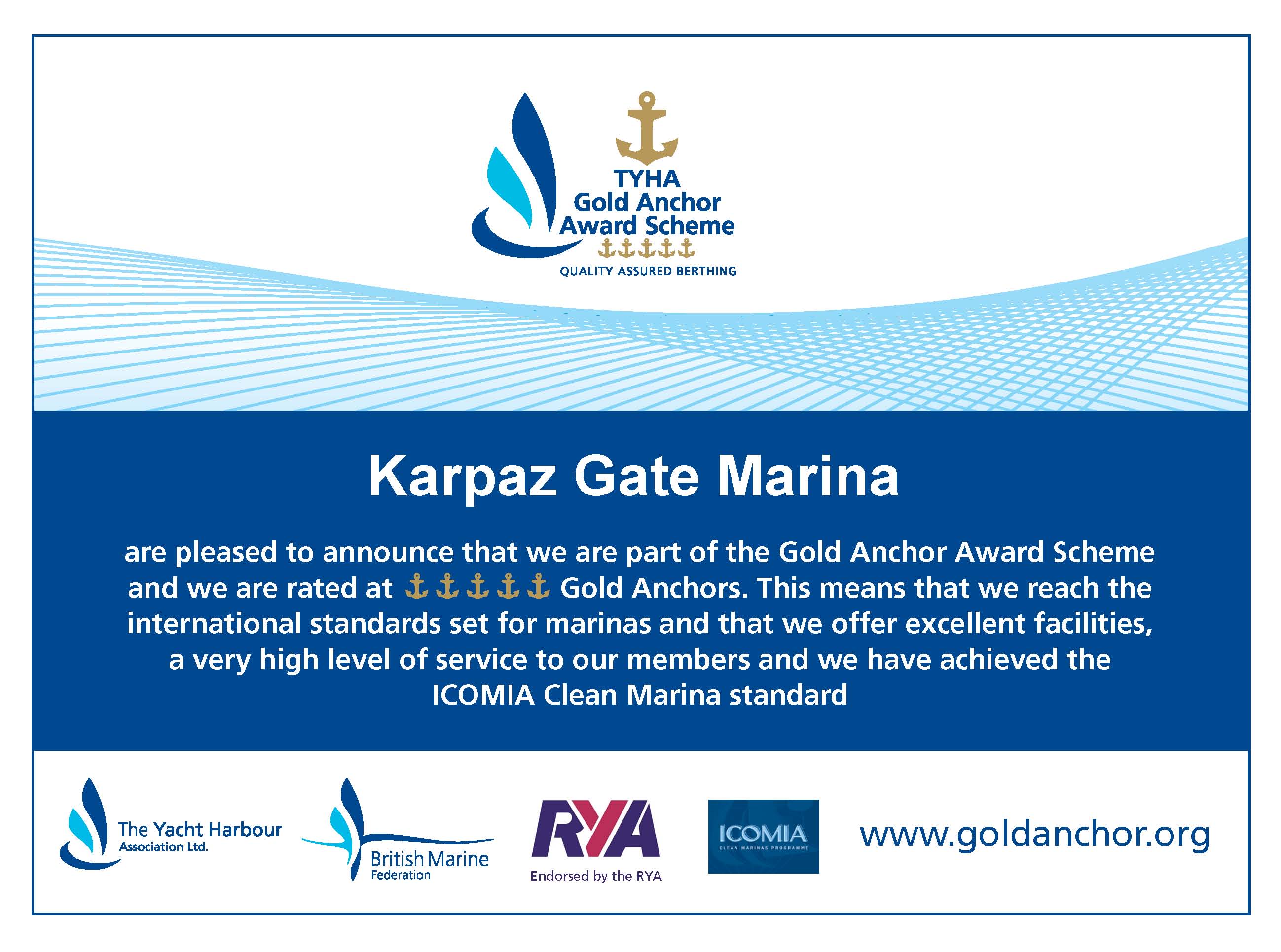 Prominent 5 Gold Anchor Award for Karpaz Gate Marina