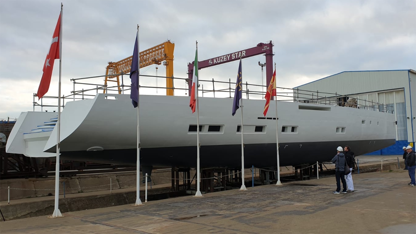 The new 42-metre Perini Navi sailing yacht E-VOLUTION has entered the water at the Turkish shipyard and is preparing to go to Italy for completion. ... read full story