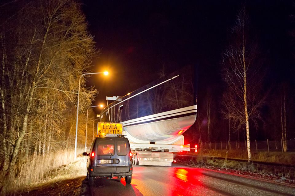 Photos from the transportation of the 35m super yacht Swan 115-002 from Nautor's lamination facilities in Kållby to Nautor BTC, which took place on December 11, 2014. ... read full story