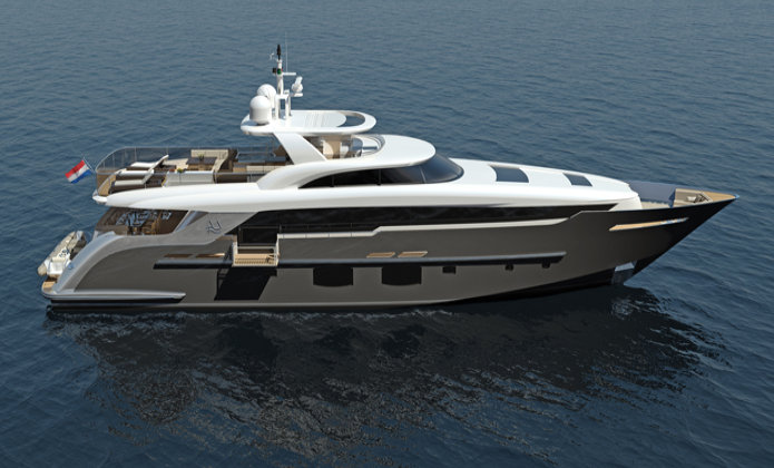 Latest renderings of the Monte Fino 32m RPH motor yacht P1104 designed by Mulder Design