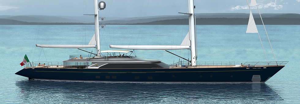 Complete set of composite rigging back by Future Fibres for 60m Perini Navi superyacht Hull C.2193