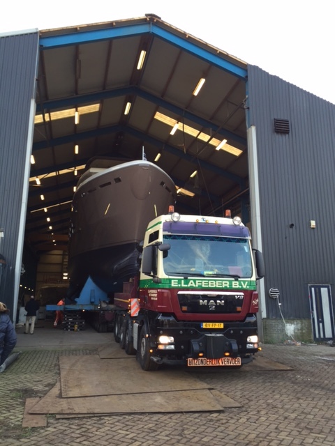 NEW 24m Drettmann Explorer Yacht (DEY) leaves her shed at Acico Yachts