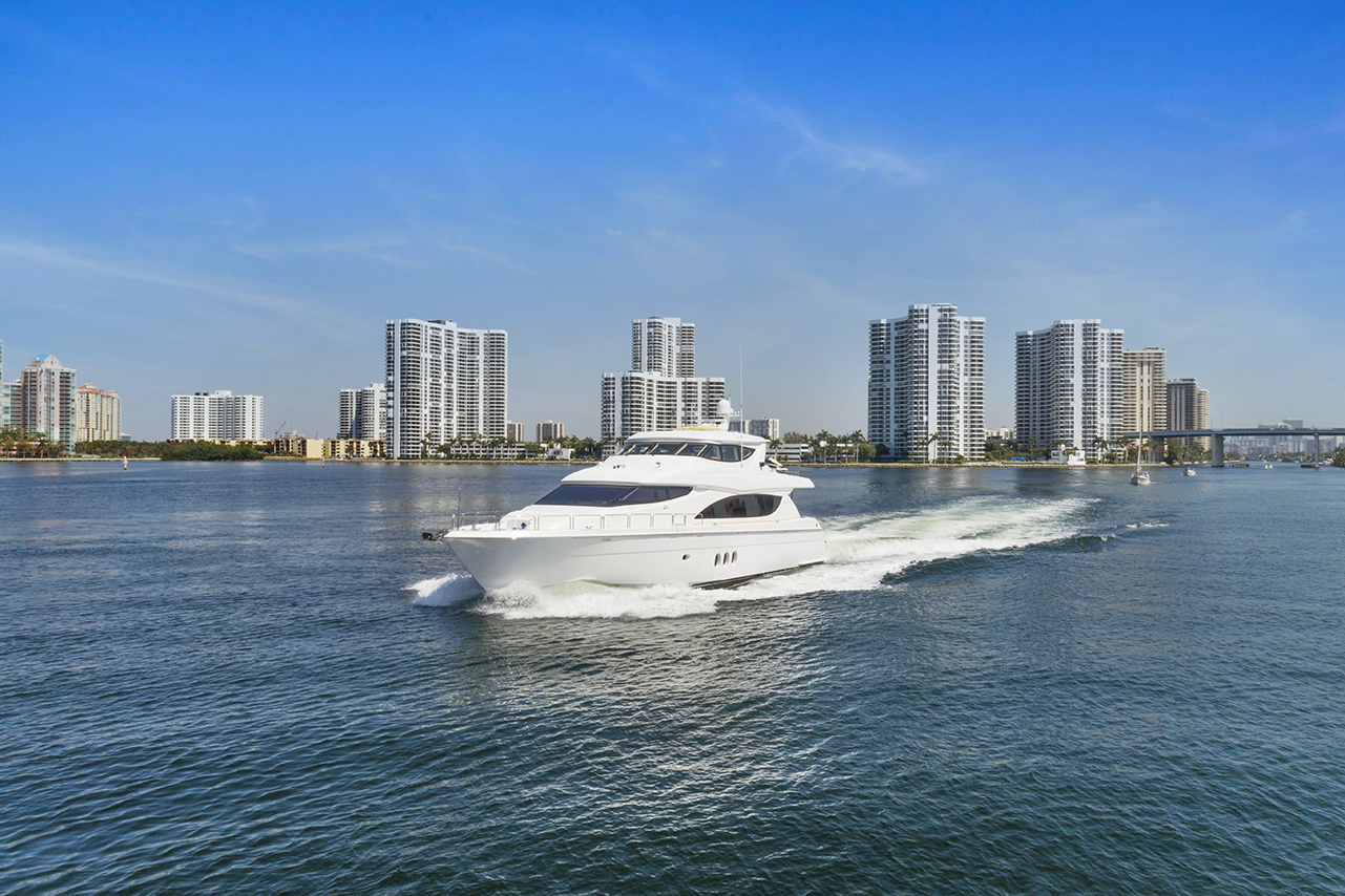 Beautiful Hatteras 80 Charter Yacht KNOT TIDE underway