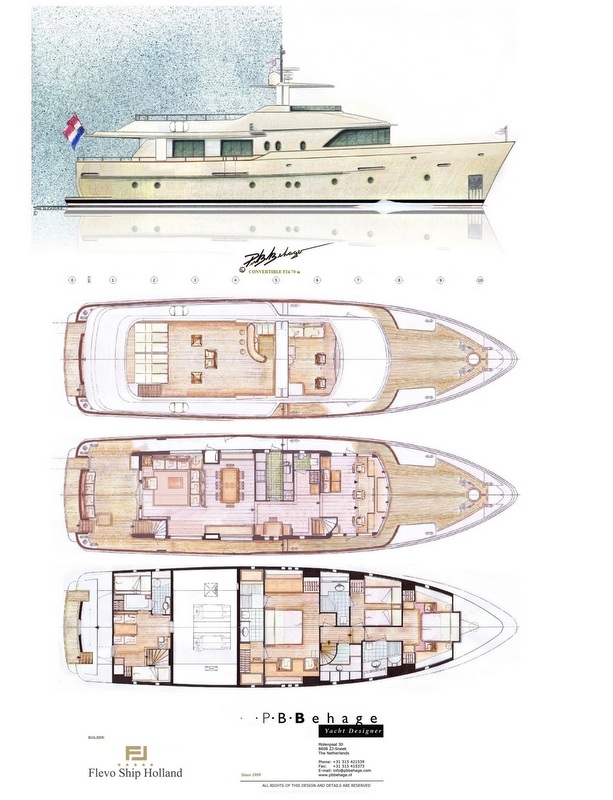 New Motor Yacht F24.70 Convertible concept designed by Piet B. Behage for Flevo Ship Holland