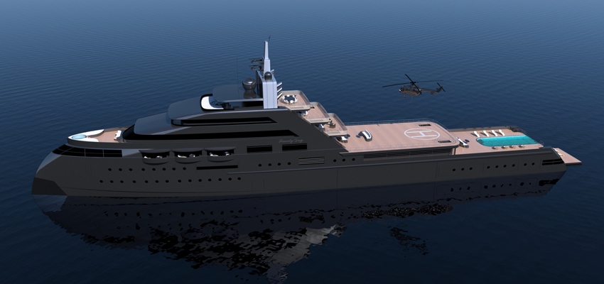 Icon 110m luxury explorer yacht FAMILY DAY designed by Joachim Kinder represents unique styling as well as design elements, featuring the ultra-modern well-proven axe-bow, mixed up with the stainless-steel shield. ... read full story