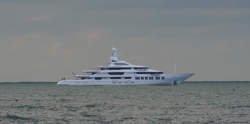 A photo showing the beautiful 88,5m Oceanco mega yacht Y710 anchored in the North Sea near Hoek van Holland on Saturday, December 13, 2014. The vessel has been superbly penned by Espen Oeino. ... read full story