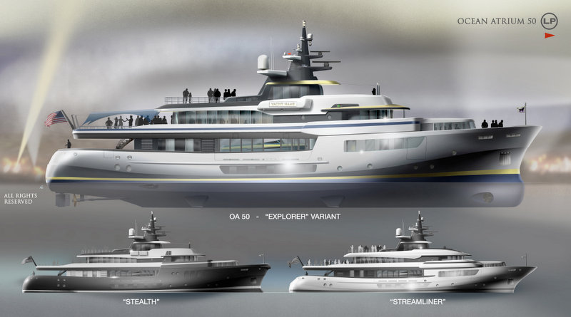 Latest 50m motor yacht Ocean Atrium design – ‘ultimate events yacht’ by LP Design Ltd UK